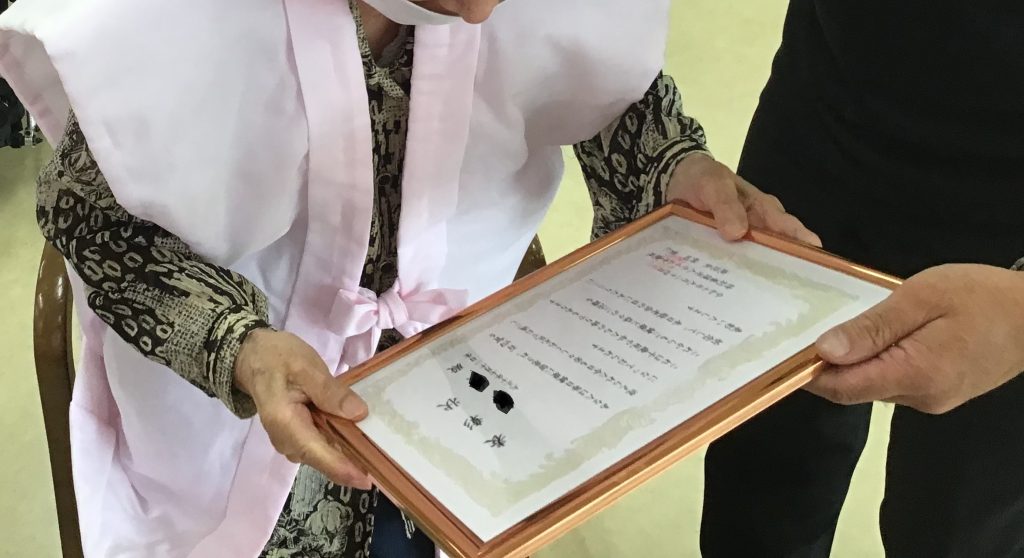 米寿などご長寿を迎えられた皆さまをお祝いし、施設長から感謝状と記念品を贈呈いたしました。